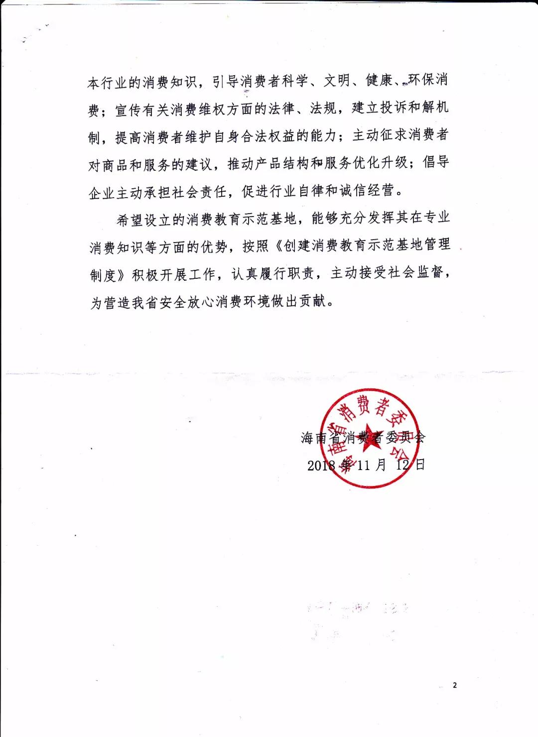 海南省消費者委員會陳秘書長表示:基地的設立,是為了能夠更好的引導消費者科學、文明、健康、環保消費,宣傳有關消費維權方面的法律、法規.提高消費者自身合法權益的能力,促進企業自律和誠信經營。